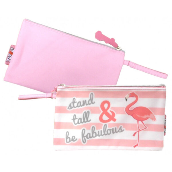Penál / Pouzdro jednokomorové s uzavíráním na zip. S moderním motivem Plameňáka.